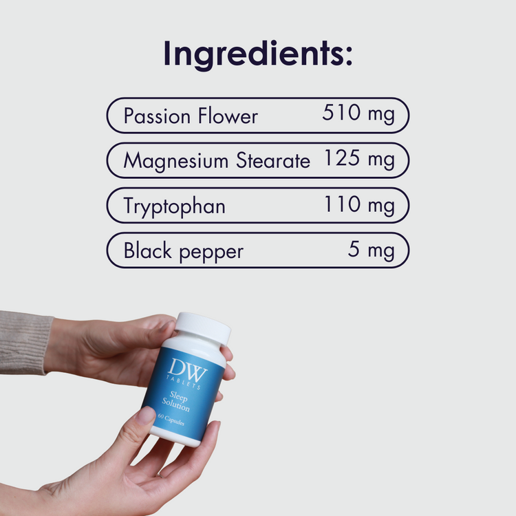 Sleep Solution: Features Passion Flower Extract to ease anxiety, Magnesium for muscle relaxation, and L-Tryptophan to support healthy sleep cycles. Black Pepper Extract boosts absorption for maximum effect.