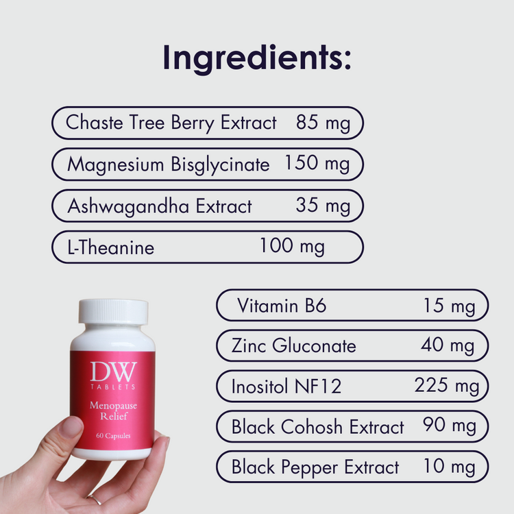Ease the transition through menopause with DW Tablets Menopause Relief, a natural formula designed to support hormonal balance, reduce discomfort, and enhance overall well-being.