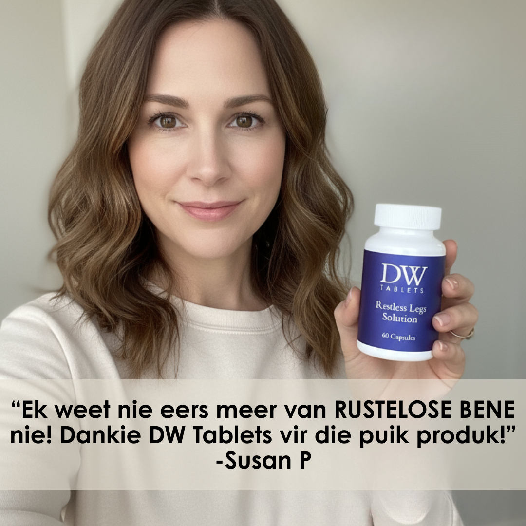 Ek sukkel al baie lank met rustelose bene. Het die advertensie van DW Restless legs kapsules gesien en die resensies gelees en besluit om dit te probeer. Ek was eers skepties want daar is soveel produkte op die mark. Maar ek kan met eerlikheid sê na 'n paar dae was daar regtig 'n verskil. My bene is rustig, pynloos en dit maak die slaap proses soveel beter. Ek sal dit regtig aanbeveel.