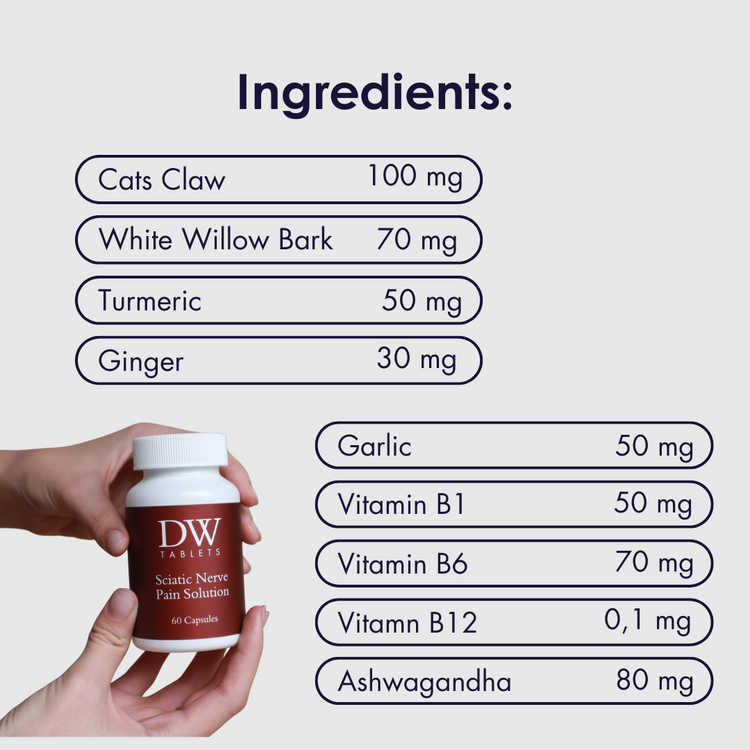 Say goodbye to Sciatica with DW Tablets Sciatic Nerve Solution β a powerful 9-in-1 natural formula designed to target pain, inflammation, and nerve discomfort at the root. With a unique blend of herbs, vitamins, and adaptogens, this supplement works fast to relieve pain, restore mobility, and support long-term back health.